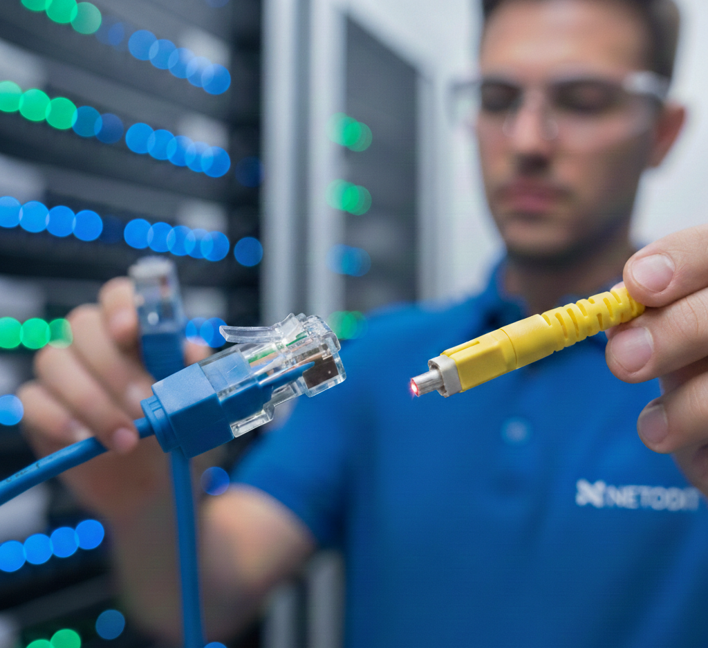 NETODIT et NETODIT IBERIA conçoivent et déploient vos infrastructures de câblage cuivre et fibre avec un niveau d’exigence élevé, depuis le tirage jusqu’au brassage et à la certification selon les meilleures pratiques du secteur.